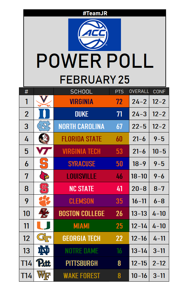 ACC Basketball Power Poll: Feb. 25