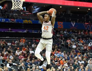 Virginia Tech’s Ty Outlaw drives in for a dunk. (Photo by Sara D. Davis, the ACC)