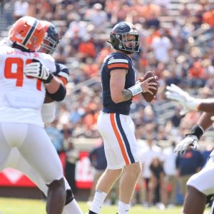 UVA quarterback Brennan Armstrong looks for an open receiver Saturday against Illinois. (Photo: UVA Athletics)