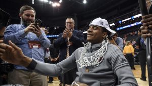 Up by 16 at the time, the Tigers didn’t let up and not only went on to defeat the top-seeded Tar Heels by 17, but kept it rolling with a 6-point overtime victory over second-seeded Kentucky to reach Minneapolis, with Okeke in attendance in a wheelchair.