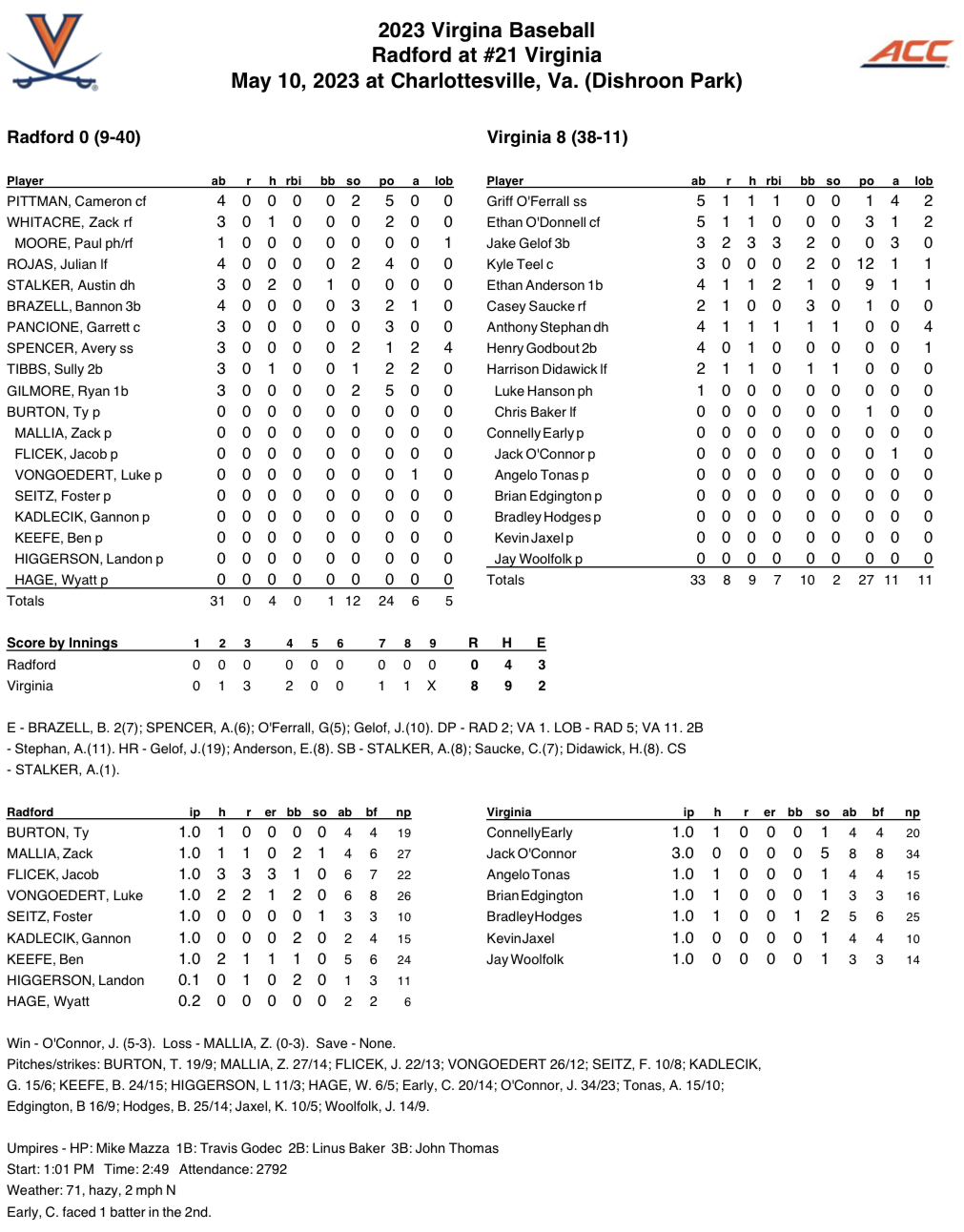 — Virginia Baseball (@UVABaseball) May 10, 2023
