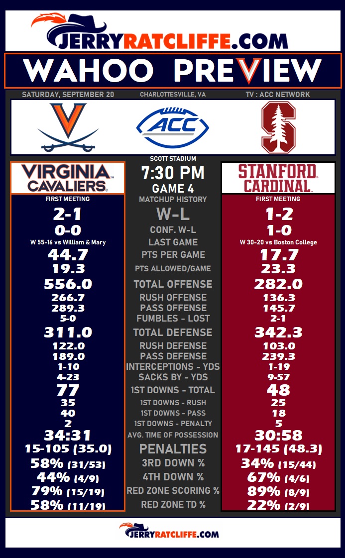 The Cavaliers have four running backs, each capable of a 100-yard day and the speed to take it to the house at any time during the game, plus a fleet of receivers with big-play capabilities. UVA has nine receivers averaging at least 10 yards per catch.