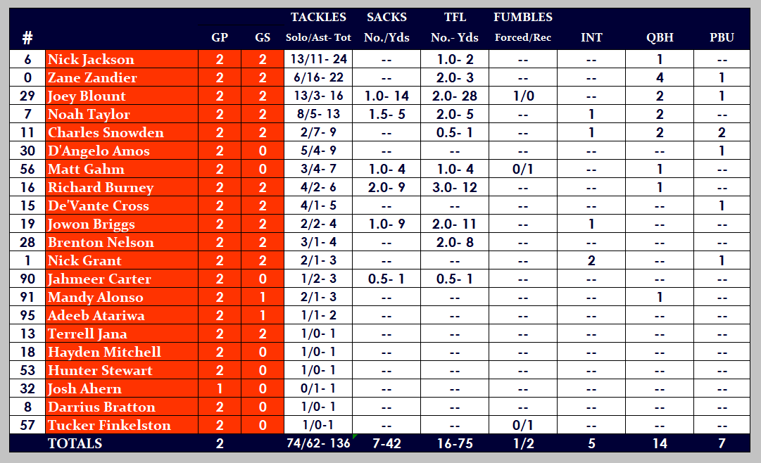 UVA Defensive Player Stats