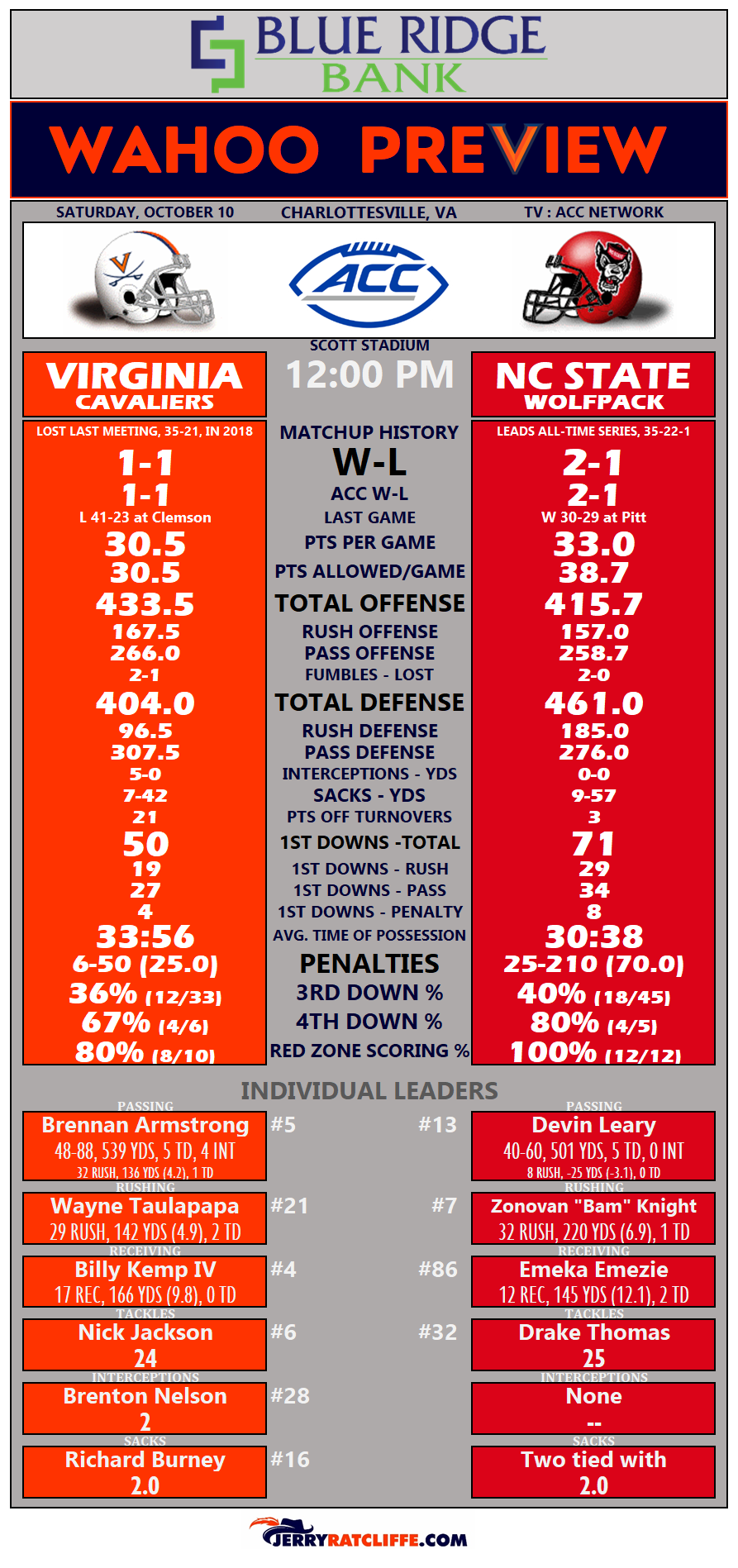 Blue Ridge Bank Wahoo Preview: NC State at Virginia