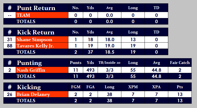 UVA Special Teams Stats