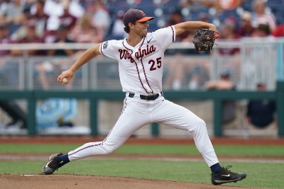Virginia pitcher Griff McGarry was cruising along Tuesday night, pitching into the eighth inning with a no-hitter against powerful Mississippi State in a battle of College World Series unbeatens.