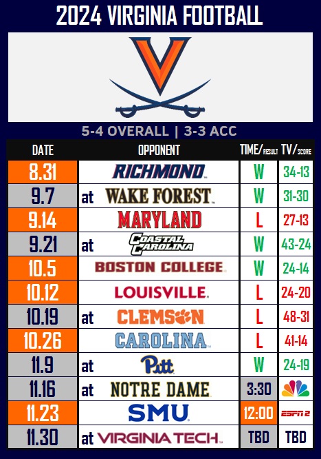 UVA coach Tony Elliott knows what looms ahead. Notre Dame is the No. 7 defense in the country (274.6 yards per game), the No. 2 pass defense (148.6) and more concerningly, the No. 41 defense against the run (126 yards allowed per game).