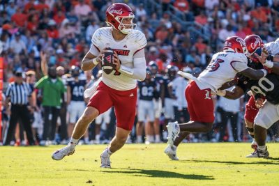 The Louisville defense stepped up, knocking away all four of Colandrea’s ensuing attempts, all of which were intended for Malachi Fields, who had another stellar performance (9 catches for a game-high 129 yards) but couldn’t come away with a reception to keep the drive alive.