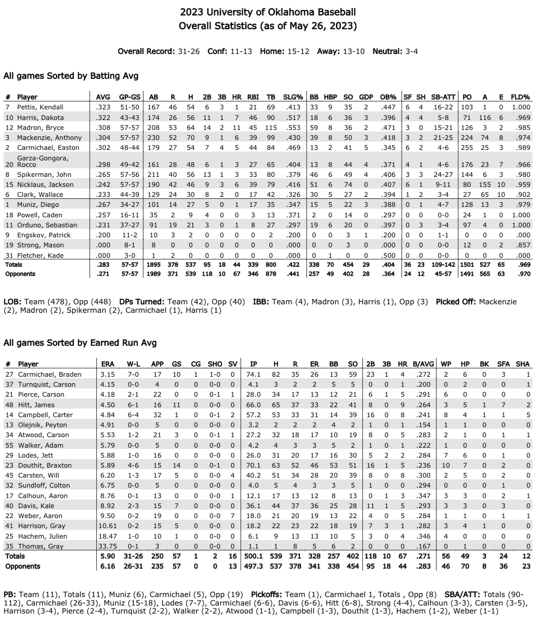Overall W-L Record: 31-26