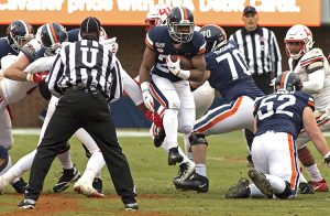Mike Hollins, a 5-9, 210 running back from Baton Rouge, La., hasn’t really touched the ball much during his two previous seasons at Virginia. Armstrong and Bryce Perkins, running quarterbacks that have led the team in rushing the past few seasons, have many more touches than Hollins, who has potential.