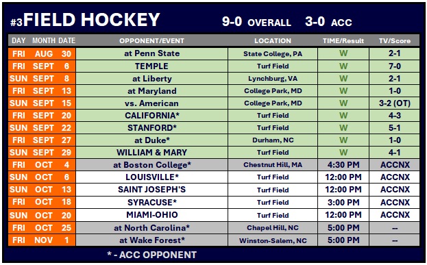 Field Hockey: No. 3 UVA stays unbeaten, rolls past Tribe, 4-1
