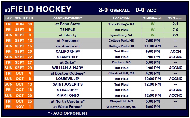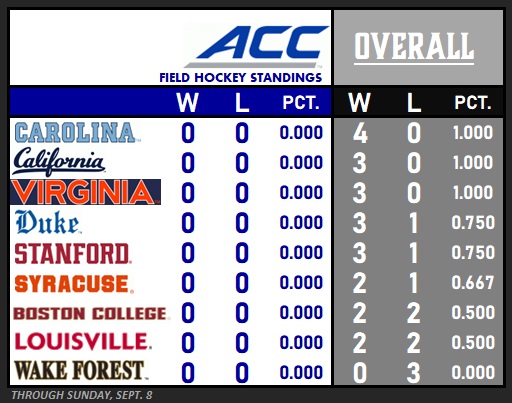 Next weekend, Virginia plays two games in College Park, Md., taking on No. 4 Maryland on Friday and American on Sunday. Virginia returns home to host California in the ACC opener for both teams on Friday, Sept. 20, at 6 p.m.