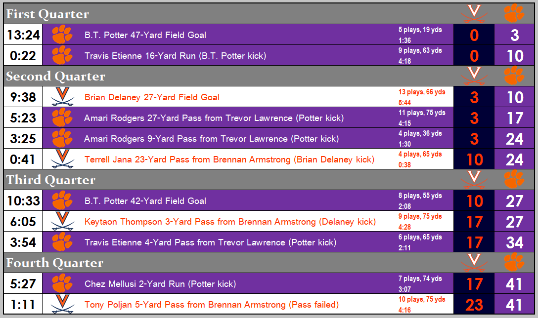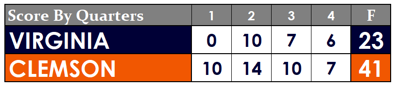 FINAL: No. 1 Clemson 41, Virginia 23