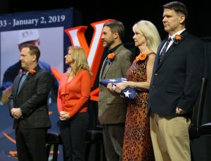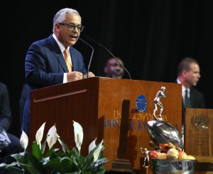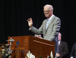 Before he finished, O’Brien also introduced another College Football Hall of Famer in the audience, UVA’s Jim Dombrowski, who went on to become a longtime starting offensive lineman for the New Orleans Saints.