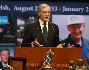 Tom O’Brien, who was an assistant under Welsh at Navy and Virginia before going on to become head coach at Boston College and N.C. State, spoke on behalf of Welsh’s 19-year run in Charlottesville.