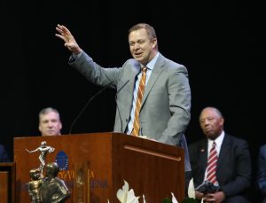 Adam thanked the players for tolerating his dad’s coaching methods, which “could be interpreted at times for lacking in grace,” he joked. “And thank you for tolerating the expletives on the practice field.”