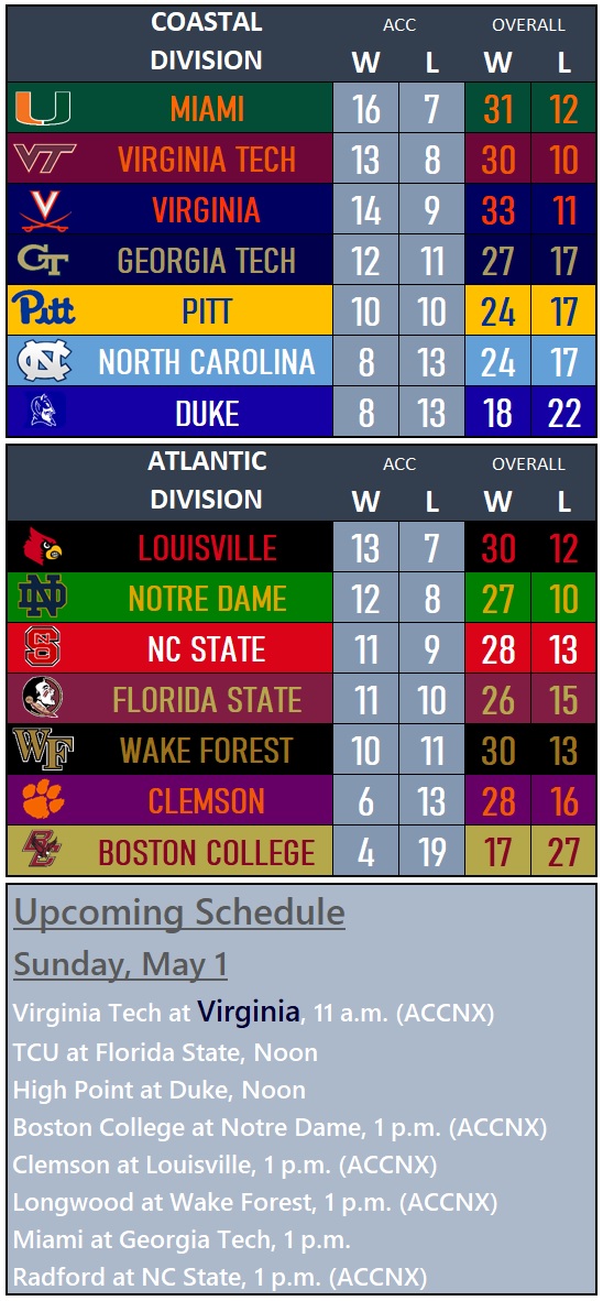 ACC Baseball Standings and Schedule