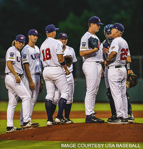 Brian O’Connor Makes A Visit To The Mound For Team USA