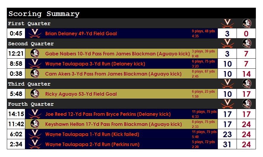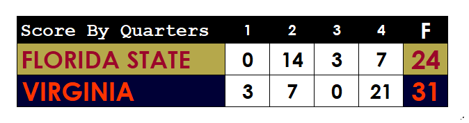 FINAL: No. 25 Virginia 31, Florida State 24
