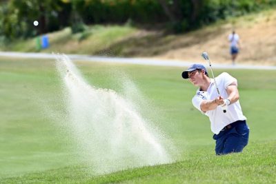 The Cavaliers clinched the win over Florida when Ben James blasted his bunker shot to within tap-in range on the 18th hole of his match against PGA Tour player Ian Poulter’s son, Luke Poulter. (See attached video below).