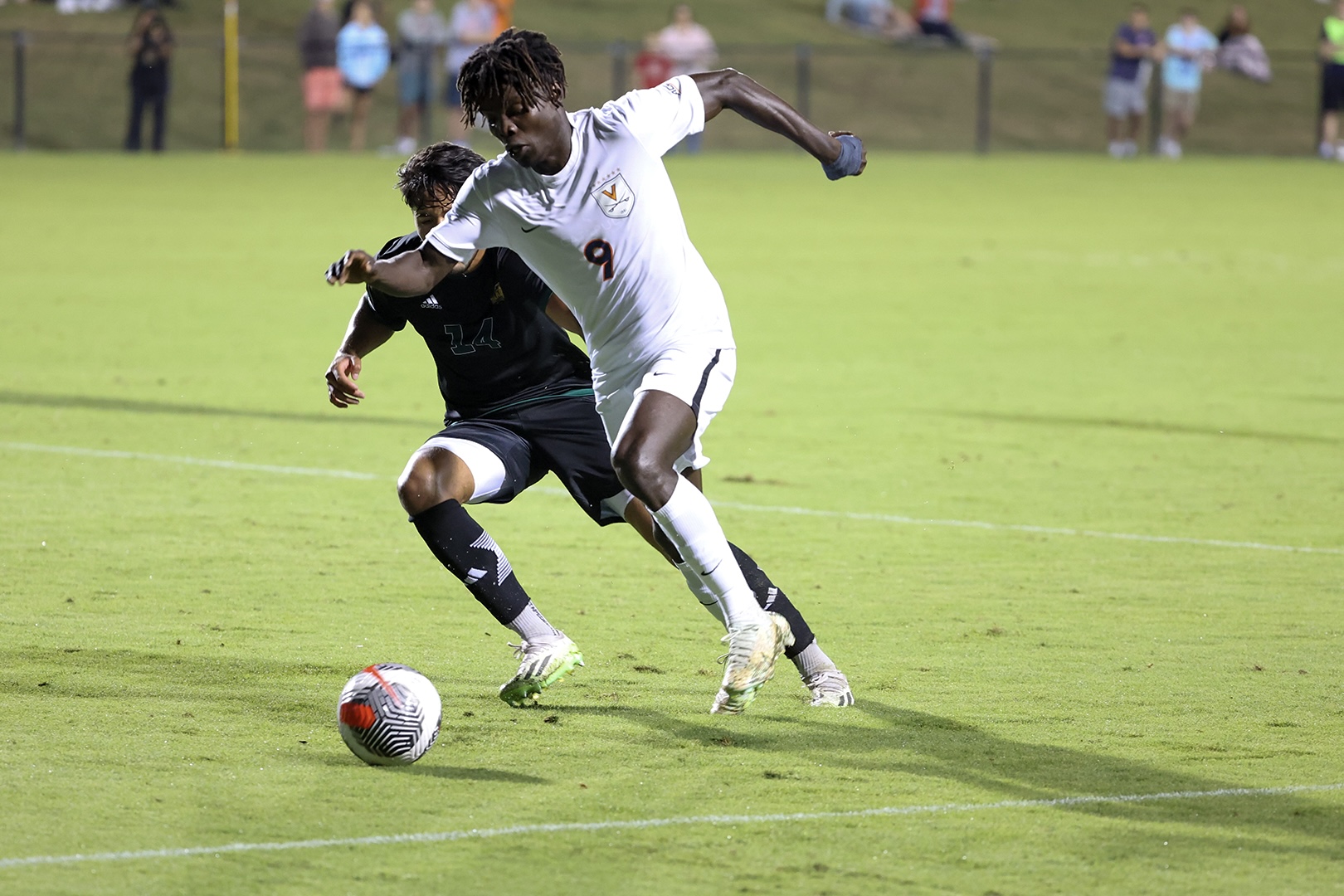 The flow of the game was controlled by Virginia early on and in the 24th minute it was freshman Stephen Annor who broke through for the Cavaliers (2-1-0). Sprinting on to a fifty-fifty ball, Mo Thiam raced past his defender with a clever touch to the outside before whipping the ball into Leo Afonso. A deflected shot from Afonso fell to the feet of Thiam who set up Annor’s first goal in a Virginia shirt.