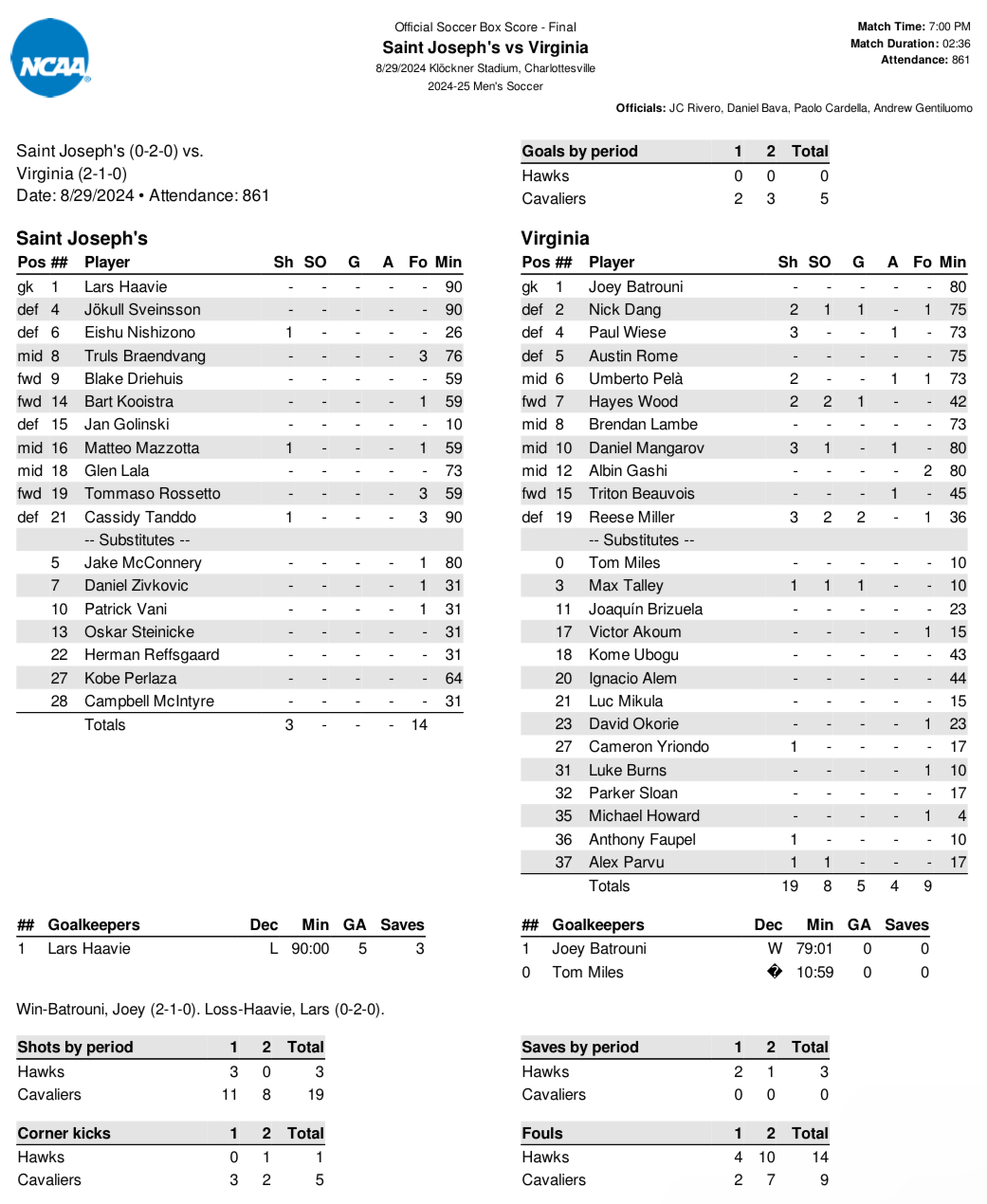— Virginia Men’s Soccer (@UVAMenSoccer) August 29, 2024
