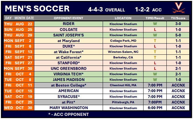 — Virginia Men’s Soccer (@UVAMenSoccer) October 9, 2024