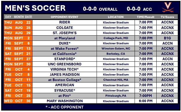 Men’s Soccer: UVA picked 6th in Preseason ACC poll