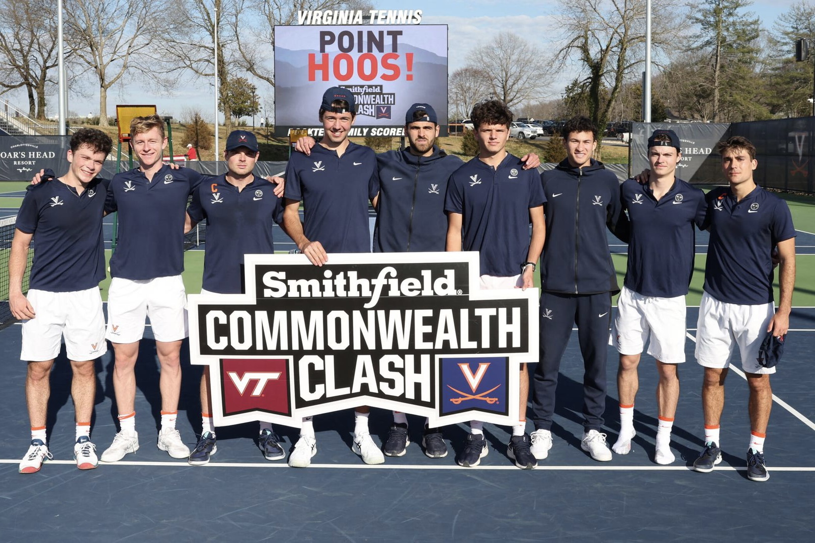 Virginia (15-4, 7-0 ACC) won the doubles point and took five of six singles matches in straight sets against the Hokies (7-10, 1-6).