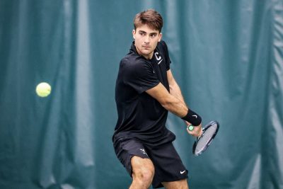 On court four, grad student Edoardo Graziani rebounded after dropping his first set 6-4 against Lucas da Silva, taking the second 6-2, but da Silva won the third 6-3 to tie the match 3-3.