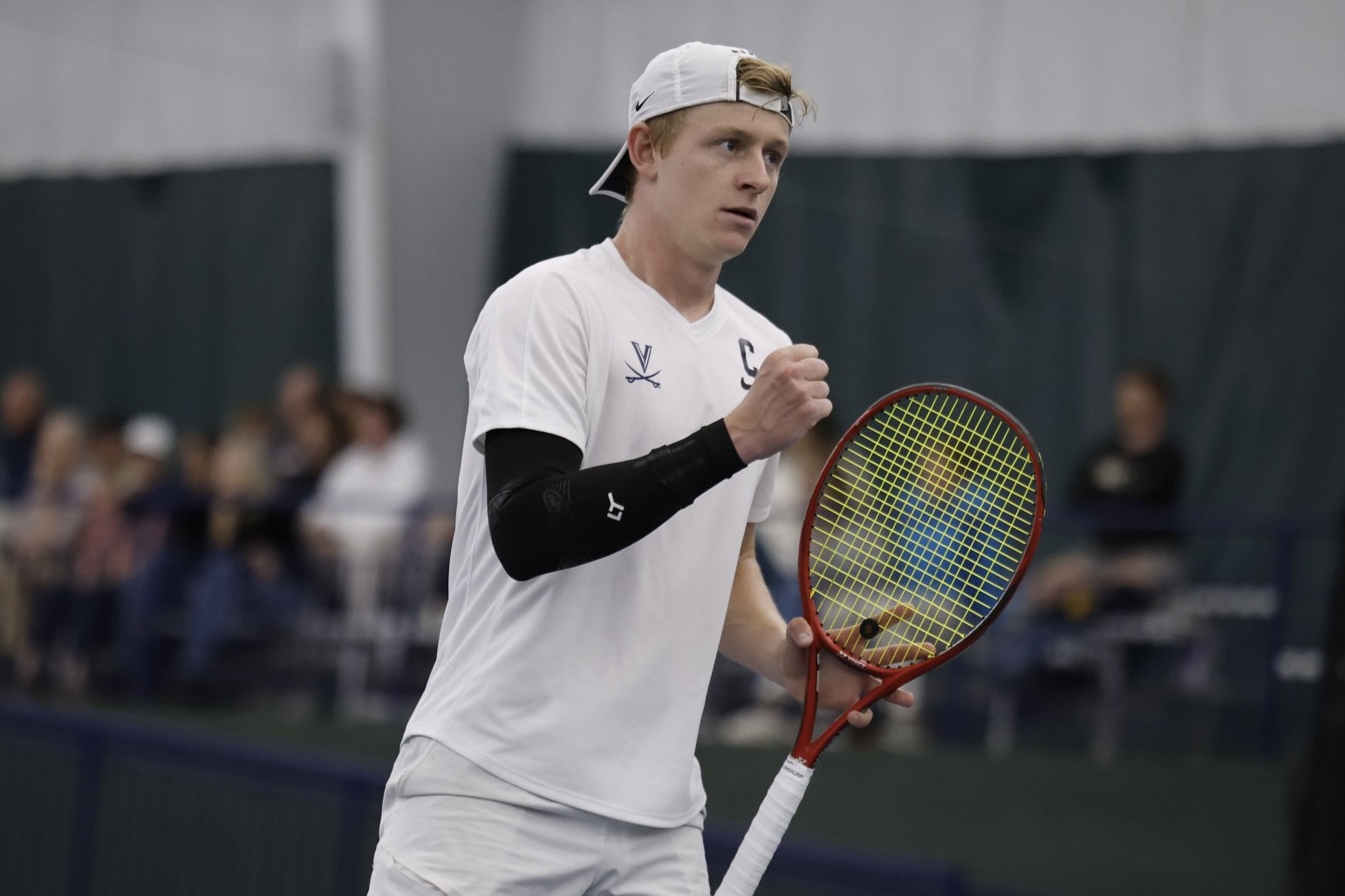 Senior Chris Rodesch won his first set 7-5 against Mathis Bondaz on the top court before taking the second 6-2 to put the Cavaliers ahead 3-0. Sophomore Måns Dahlberg closed out a 6-3, 6-1 win on court six to clinch the match.
