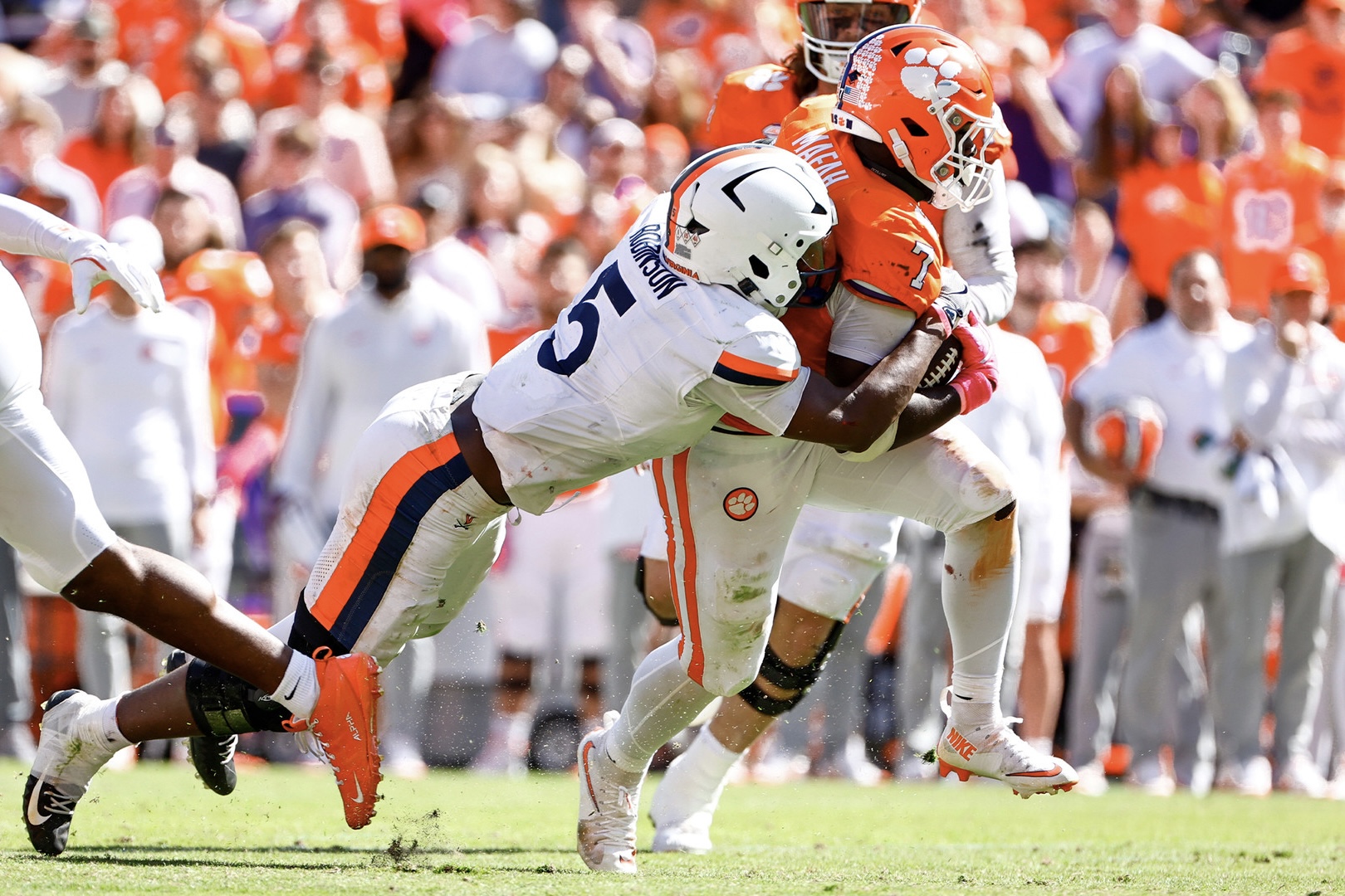 Phil Mafah rushed for 78 yards and a pair of short touchdowns in the latter portion of the second quarter to give Clemson a 17-10 lead at the break, and then tight end Olsen Patt-Henry hauled in two TD passes from Klubnik as part of the third-quarter onslaught, in which the Cavaliers simply couldn’t move the football, nor stop the Tigers’ offense.