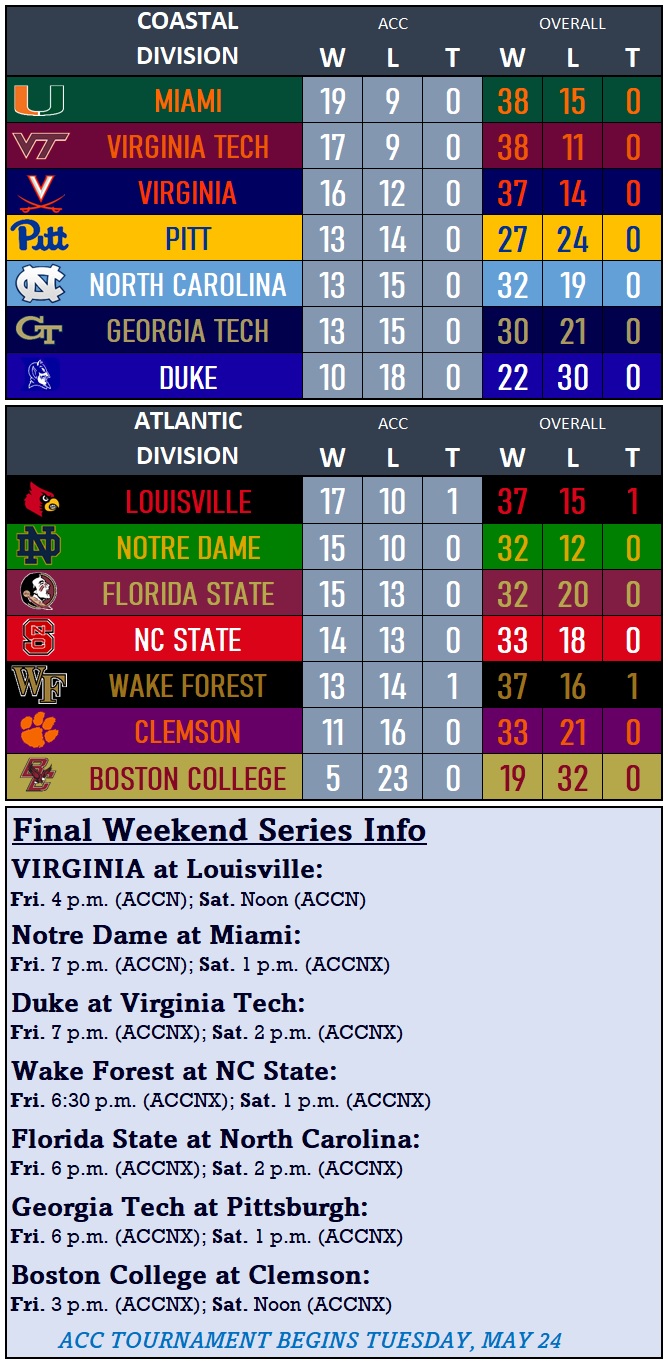 - The last two ACC series openers for UVA have been played over the course of two calendar days. Last week’s opener against Clemson was suspended after four innings and completed the next day.