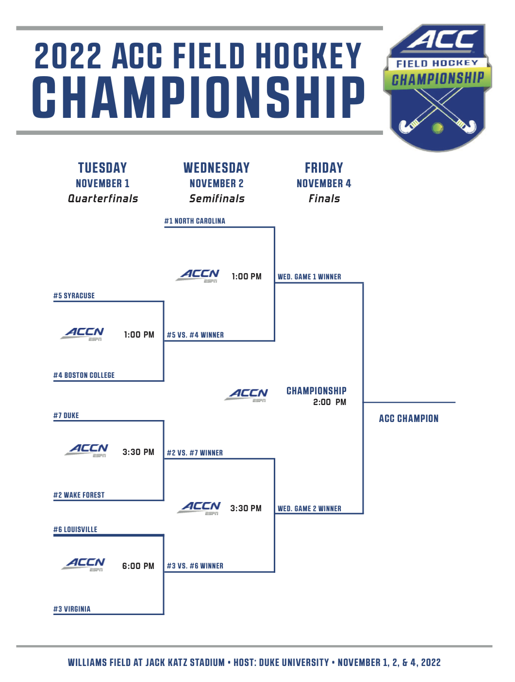 All of the tournament games will air on the ACC Network and stream online on ACCNX.