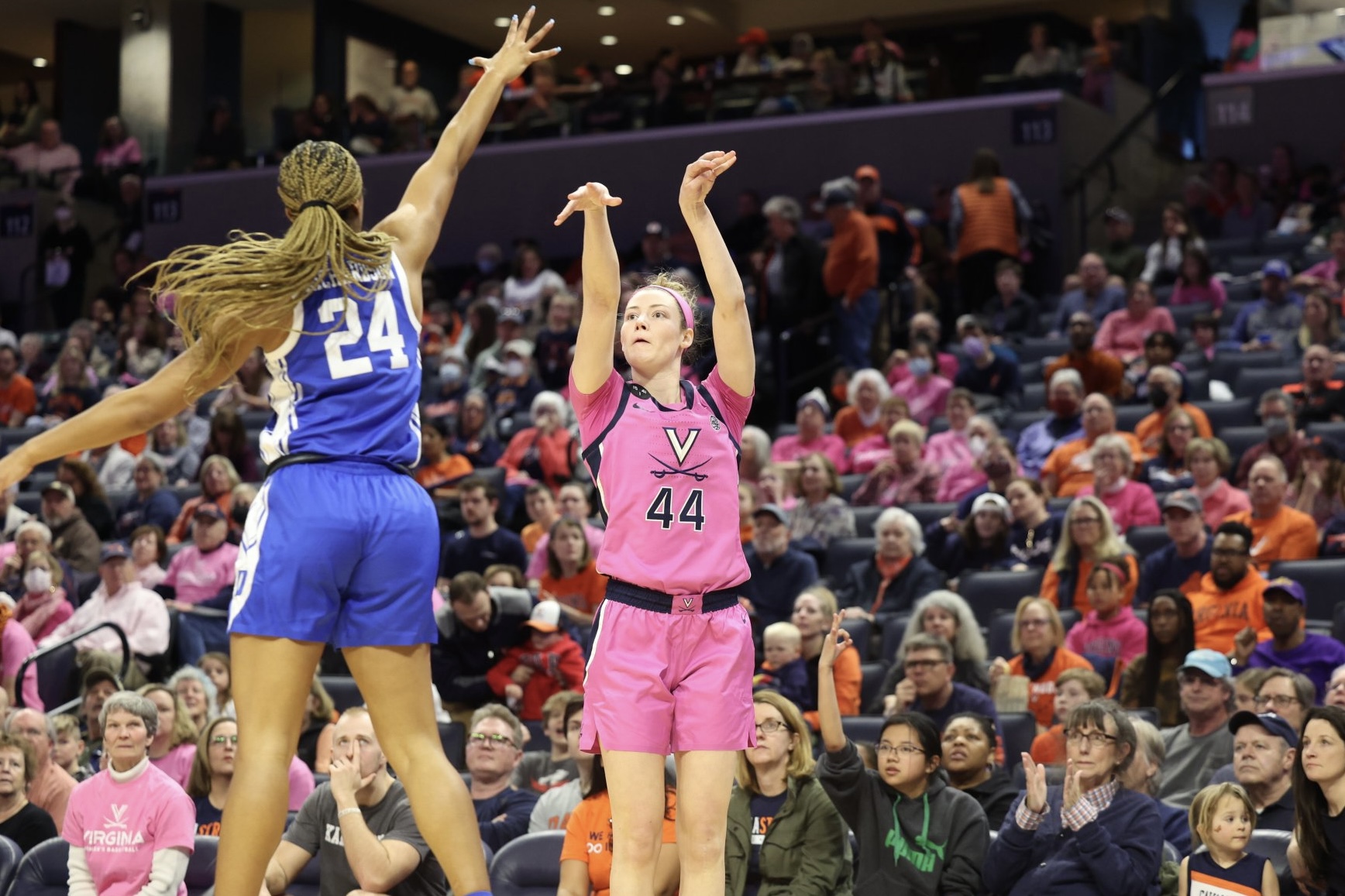 Back-to-back 3-pointers from Balogun and Vanessa de Jesus gave the Blue Devils their largest lead of the game, 42-29 with 5:45 remaining in the third quarter, but the Cavaliers mounted a comeback. Taylor hit a jumper to ignite the rally. Dale was fouled on a 3-point attempt, making all of her free throws. Taylor hit another jumper before Lawson drained her second trey of the game to make it a three-point deficit, 42-39, with 1:20 left in the quarter. Jordyn Oliver made a layup for Duke to halt the run.