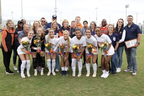 - Virginia honored seven seniors prior to kick: Sarah Clark, Claire Constant, Jansen Eichenlaub, Haley Hopkins, Rebecca Jarrett, Michaela Moran and Alexa Spaanstra.