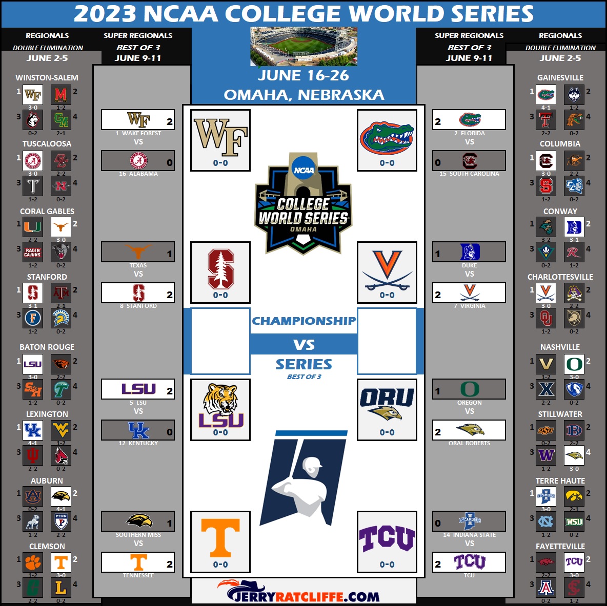 TCU (42-22) and Oral Roberts (51-12) will be the other two teams on Virginia’s side of the bracket and will square off at 2 p.m. Friday. The winners will meet at 7 p.m. Sunday, while Friday’s losing teams will play an elimination game at 2 on Sunday.
