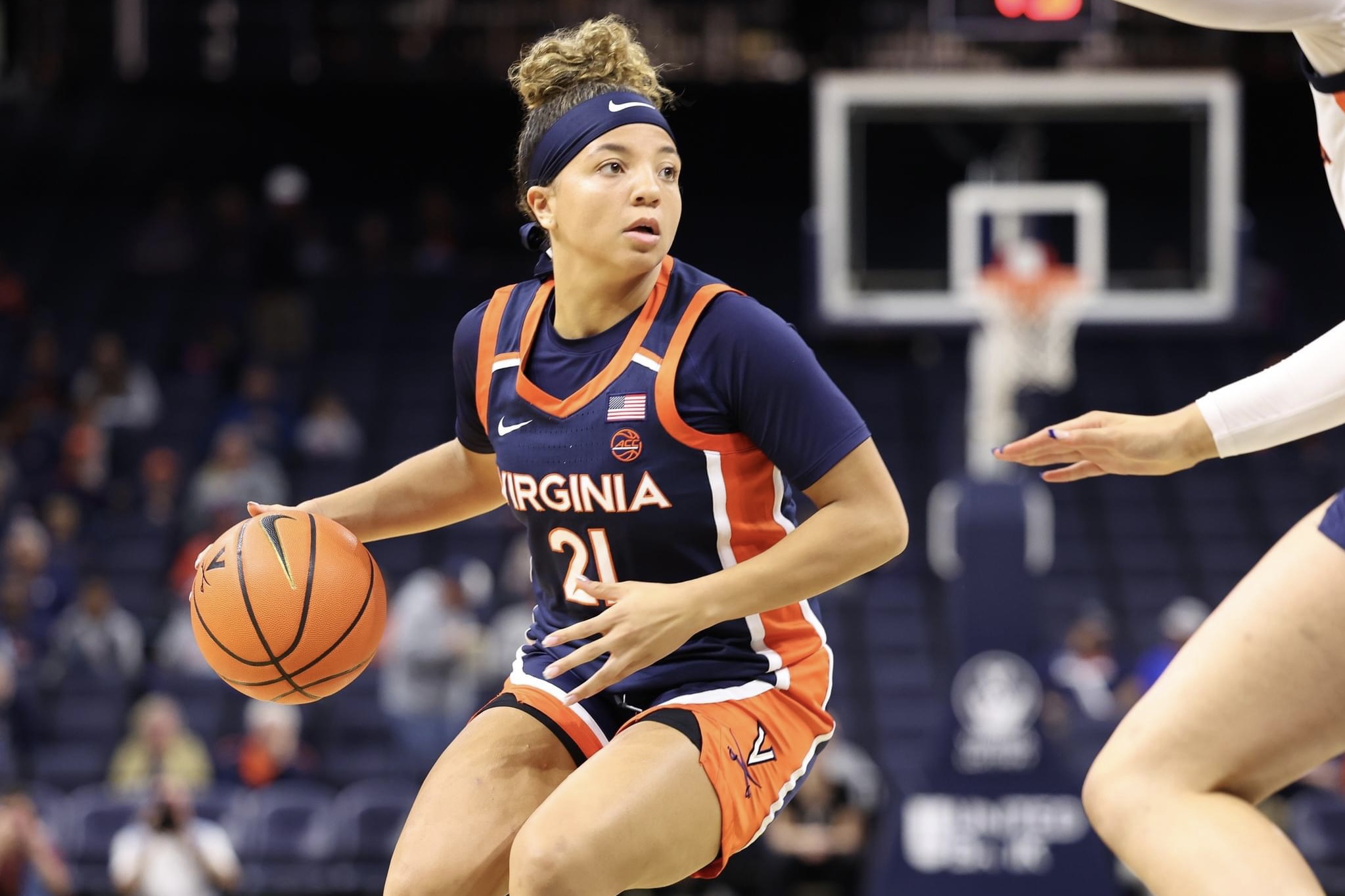 The Cavaliers’ other star recruit, 5-star Kymora Johnson of St. Anne’s-Belfield, was as advertised. The McDonald’s All-American was comfortable running things from the point and pitched in 10 points in the game, won by her Blue team, 34-24.