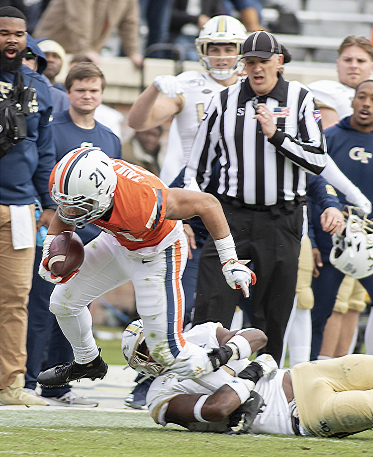 Virginia’s Billy Kemp tries to stay a step ahead of three Georgia Tech tacklers.