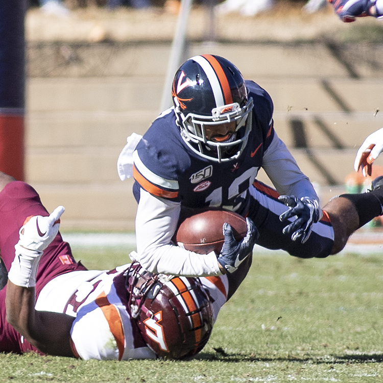 Virginia’s Terrell Jana fights for extra yards after a catch.