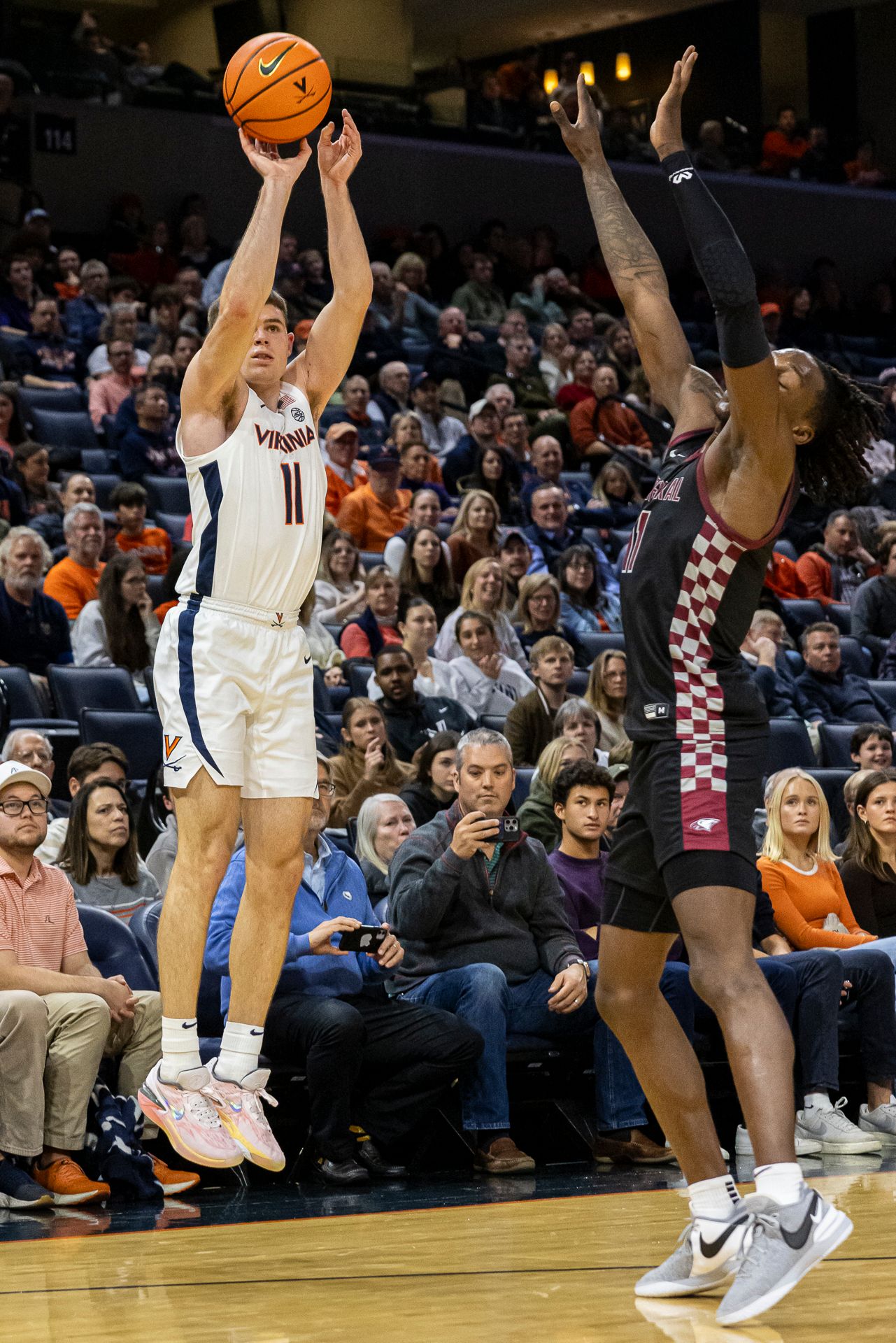 After knocking down 6 of 8 of his 3-point attempts in Virginia’s rout of visiting North Carolina Central on Tuesday, McKneely woke up the following morning ranked No. 2 in 3-point field-goal percentage in major college basketball. McKneely is shooting a blazing 58.14 percent from beyond the arc (25 for 43). The only player ranked ahead of him is Kentucky freshman Reed Sheppard, shooting 61.11 percent (20 for 36). If you take players who have attempted at least 40 triples, McKneely leads the nation.