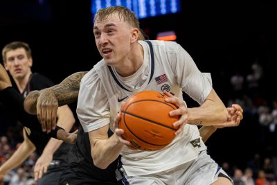 Tuesday night, they were on, making 11 of 24 (45.8), with Rohde leading the way with 4 of 8. That was not the case last year when he transferred into Virginia from the portal, having come off a glorious freshman campaign at St. Thomas in Minnesota. He became the first Tommie freshman to score 500 points in a season en route to being selected as the Summit League Freshman of the Year.