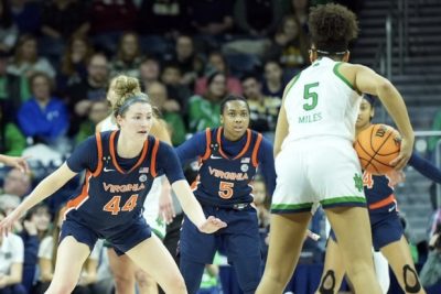 Playing its third consecutive road game against a top-10 opponent, the Virginia women’s basketball team lost 76-54 at No. 7 Notre Dame on Sunday at Purcell Pavilion.