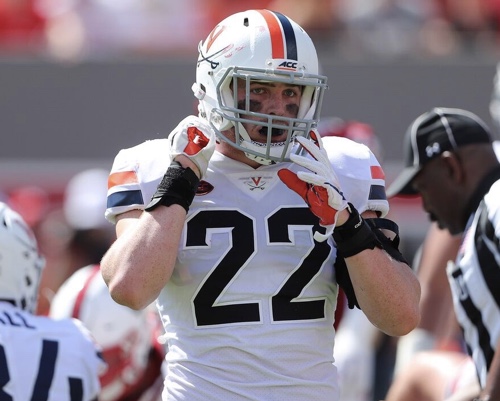 UVA linebacker Rob Snyder will not play again in 2019, per Coach Mendenhall (Photo: UVA Athletics).