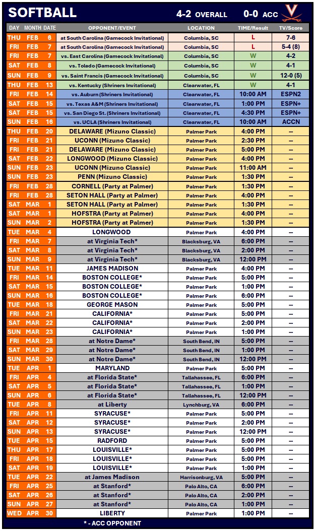 - The game against the Wildcats was Virginia’s third against an SEC team in the first six games of the season and the Hoos will follow it up with two more SEC opponents in the next two games in Clearwater.