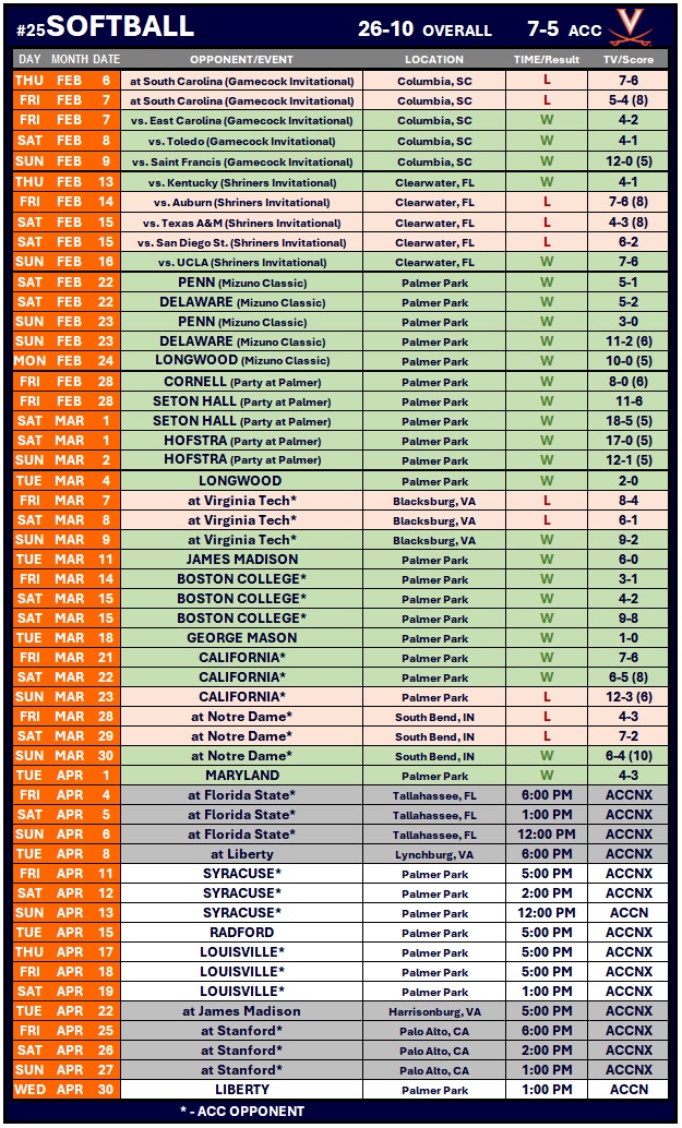— Virginia Softball (@UVASoftball) April 2, 2025