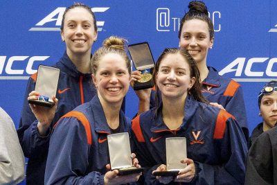 UVA’s relay team of sophomore Gretchen Walsh, junior Alex Walsh, senior Lexi Cuomo and senior Kate Douglass, respectively, opened the night with their record-setting time of 1:31.73 to win the ACC title in the event.