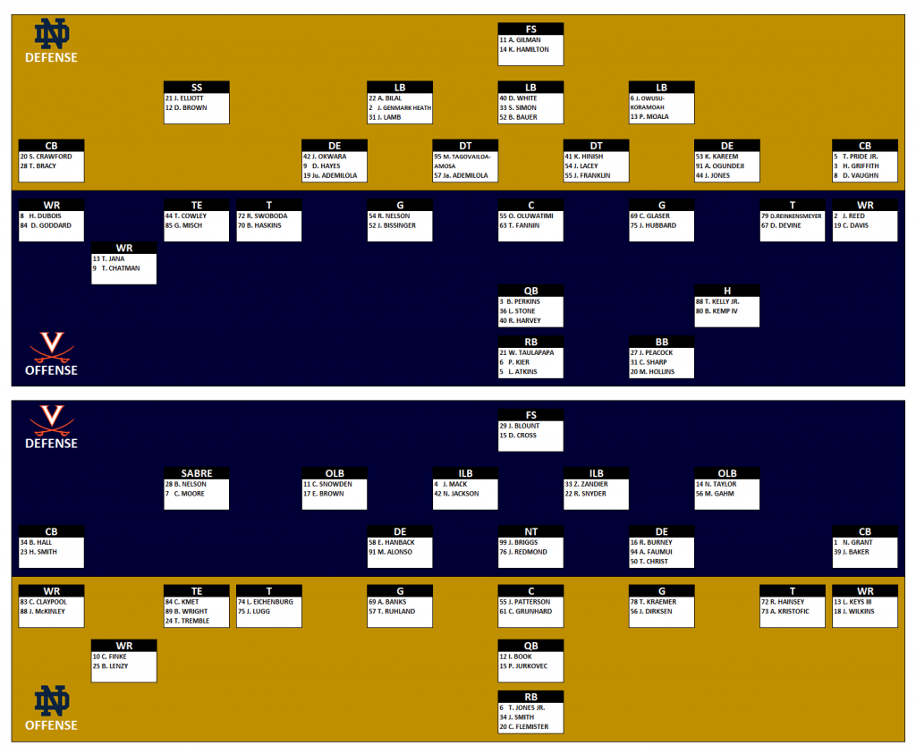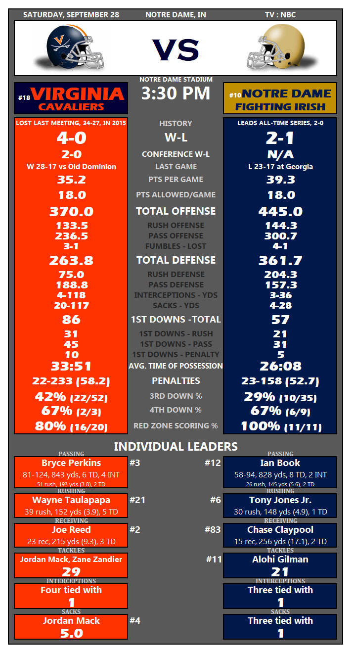 Tale Of The Tape: No. 18 Virginia at No. 10 Notre Dame