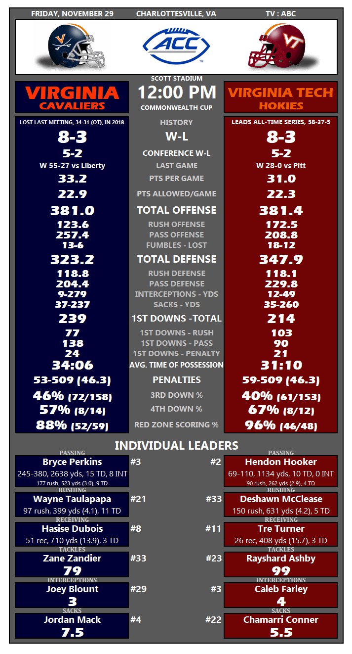 Tale Of The Tape: No. 23 Virginia Tech at Virginia
