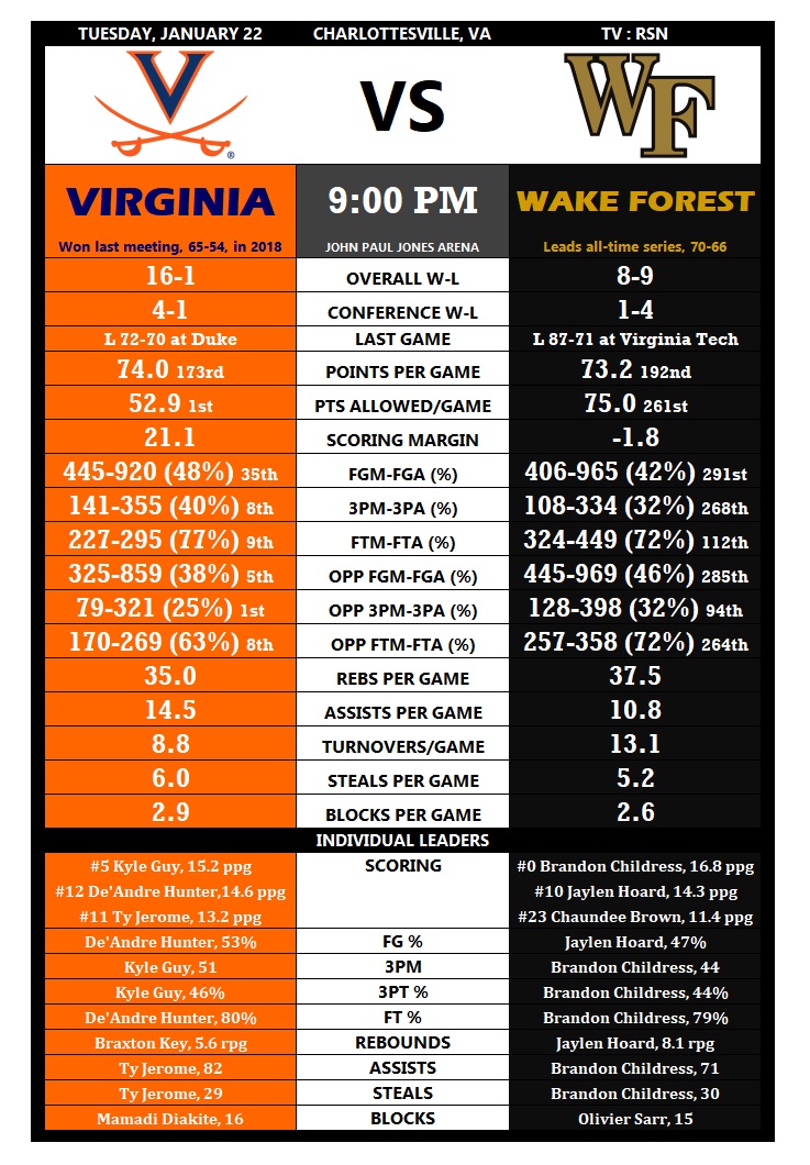 Tale of the Tape: Virginia vs. Wake Forest